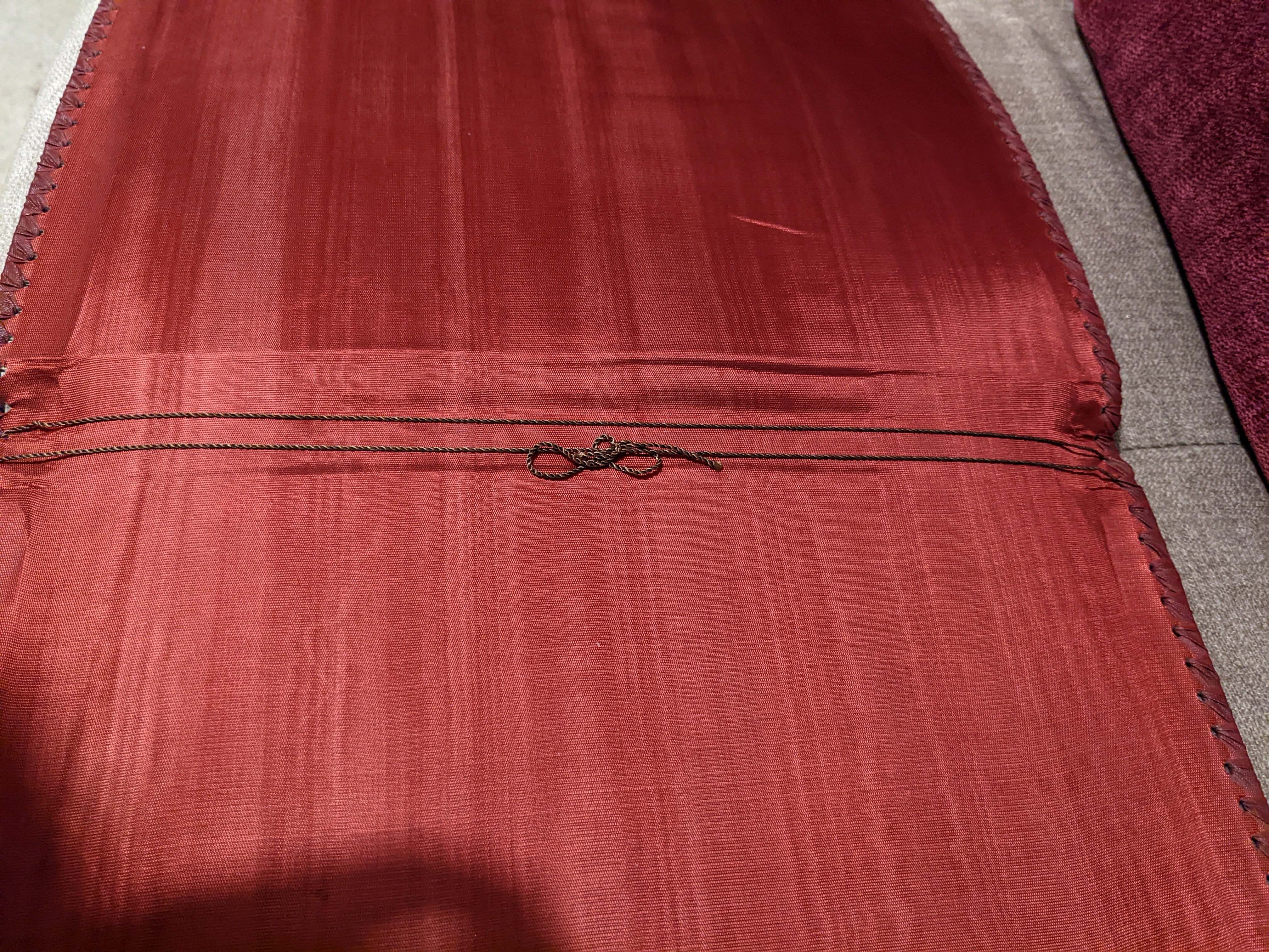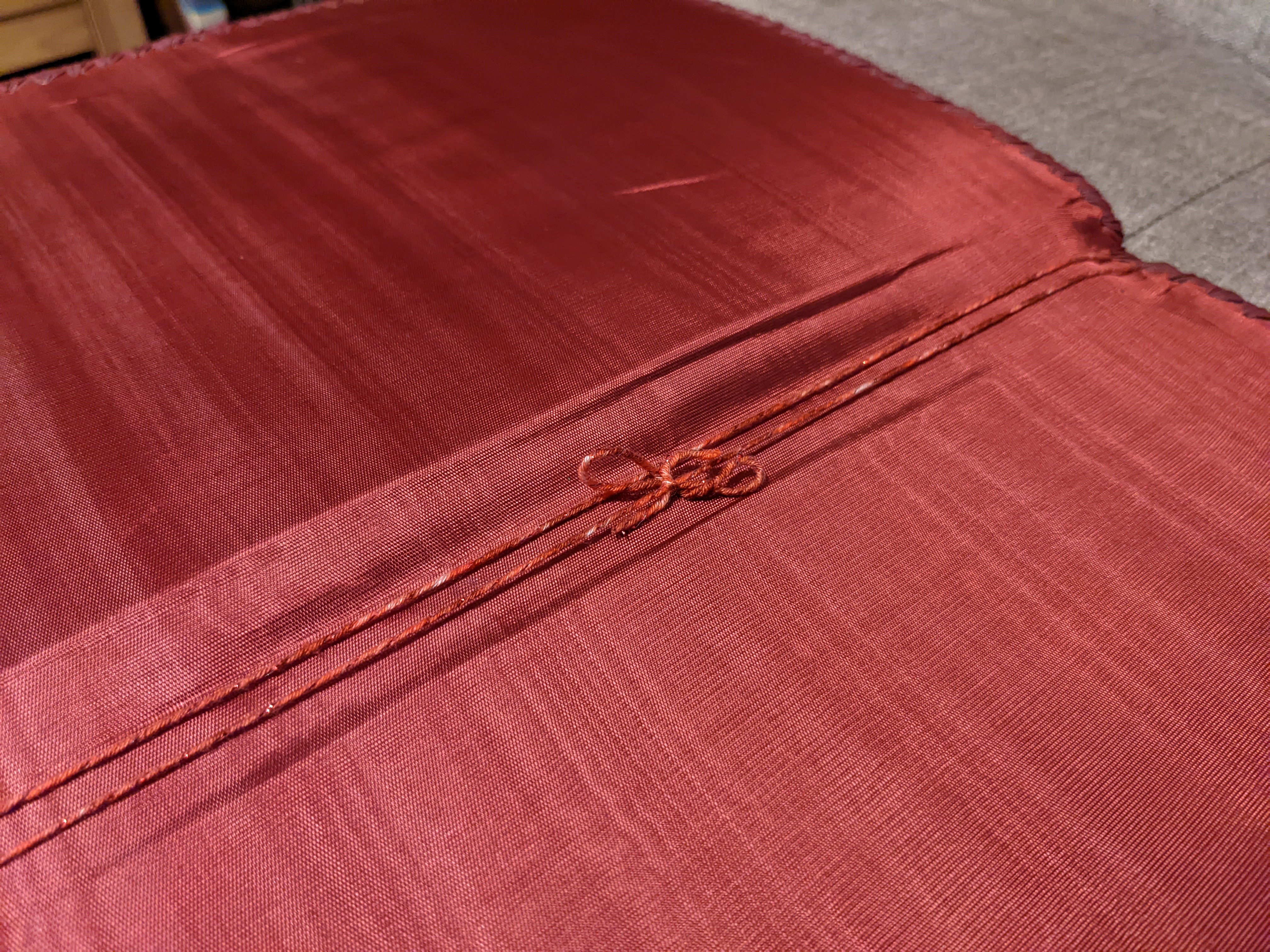 The other thing I decided to do was to replace the inner string. I thought it would be nice to freshen the cover up as much as possible, and I had some red glittery thread that I thought would do the trick.