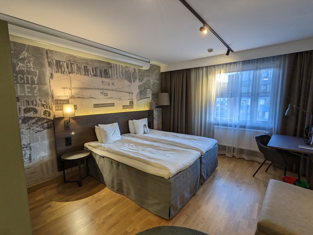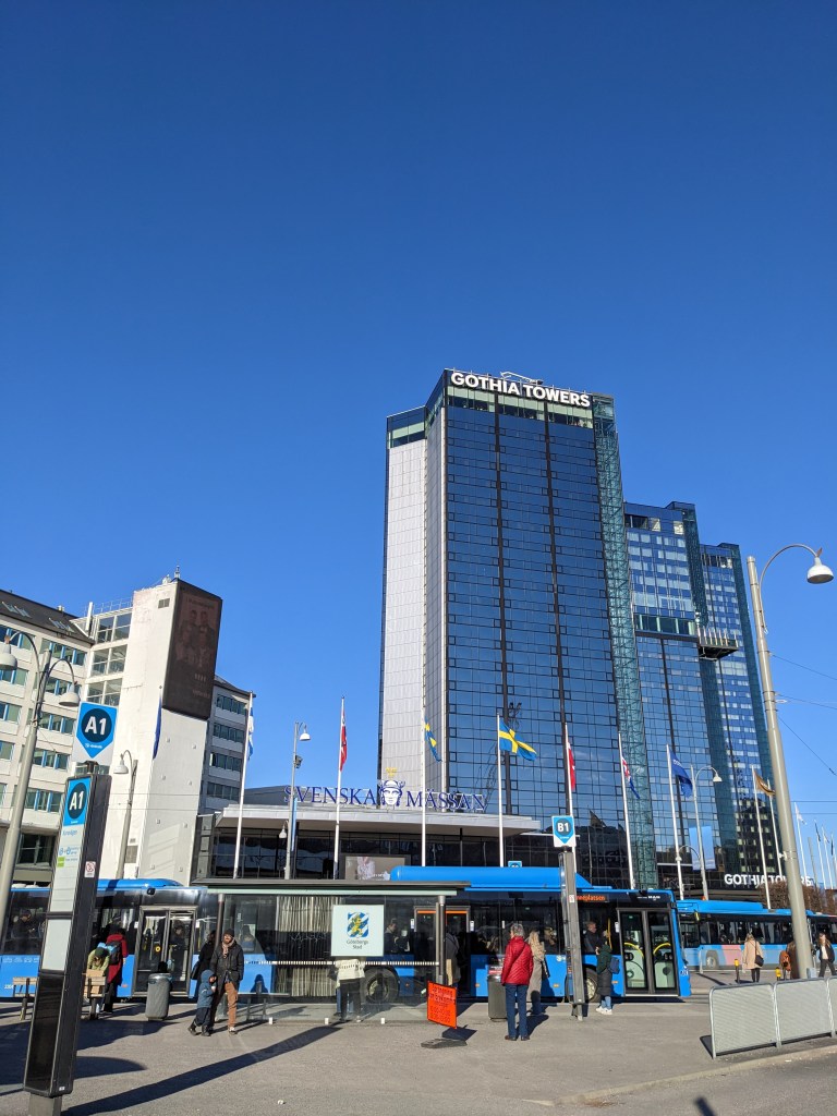 On the other side, I was very pleased to be reunited with my suitcase, and I headed for the Flygbussarna – a bus which goes from the airport into the city centre every half hour, and which I’d been able to pre-book online. (Something I was to learn about Sweden is that it is extremely contactless – I had taken out both a travel card and some physical Swedish krona – and I never used any of the cash!! Many places refuse it!)
