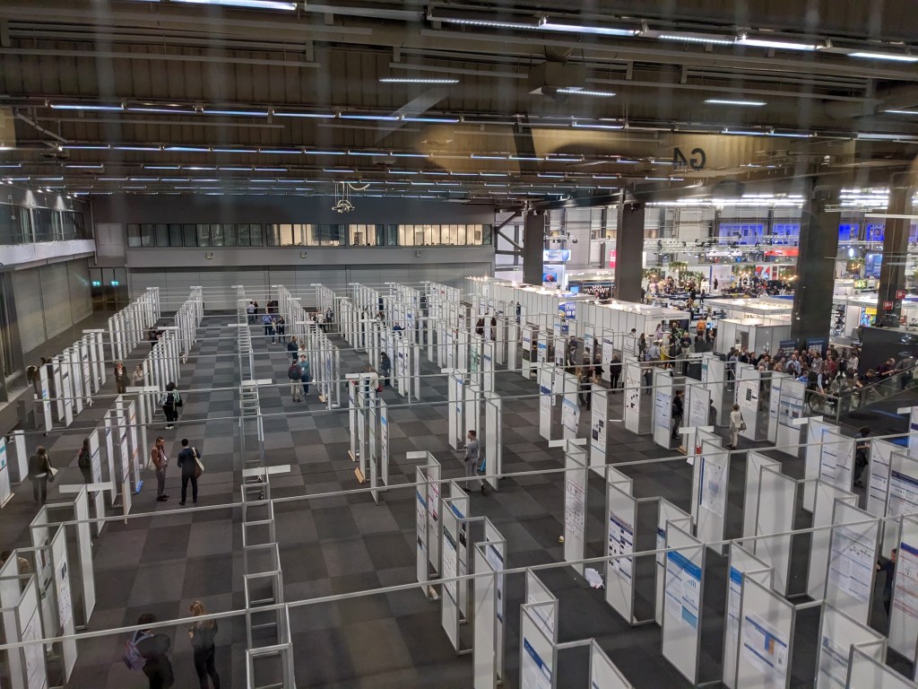 The problem was: there were so many posters! There was a screen with a guide to the themes, but this quickly flicked through slides, and I struggled to follow the system. I saw quite a lot of people wandering round, looking equally lost (perhaps it didn’t help that this was the first day of the conference, and people were still getting their bearings). I remembered that I had also uploaded my poster to an online platform, and had recorded a spoken presentation. I decided that I would be better off looking at the other posters online, rather than trying to dash through all 1000+ boards, desperately trying to find the ones relevant to me!